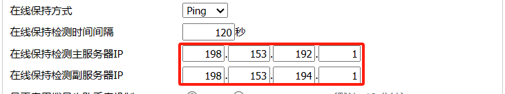 • 當使用VPDN專網卡時,在線檢測服務器地址需要修改為可以用 VPDN卡上網長ping通的地址。