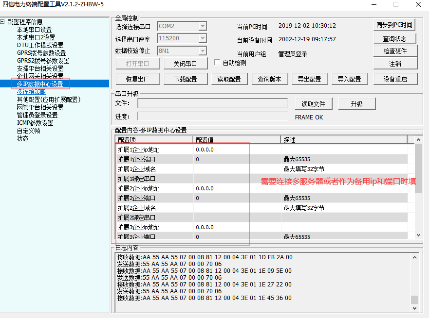 用戶類型日志幫助現場工程師分析FTU和主站之間交互的報文,而管理員日志為更詳細的報文,用于分析網絡狀態,如果網絡異常可以將管理員日志保存到串口發給四信工程師分析。