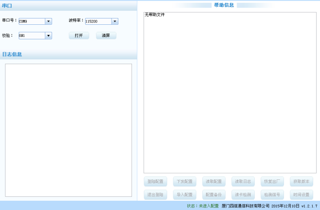 在串口參數設置欄內顯示當前打開串口的串口參數,默認波特率為115200,連接設備打開相應串口號,運行界面如下: