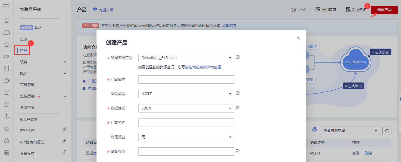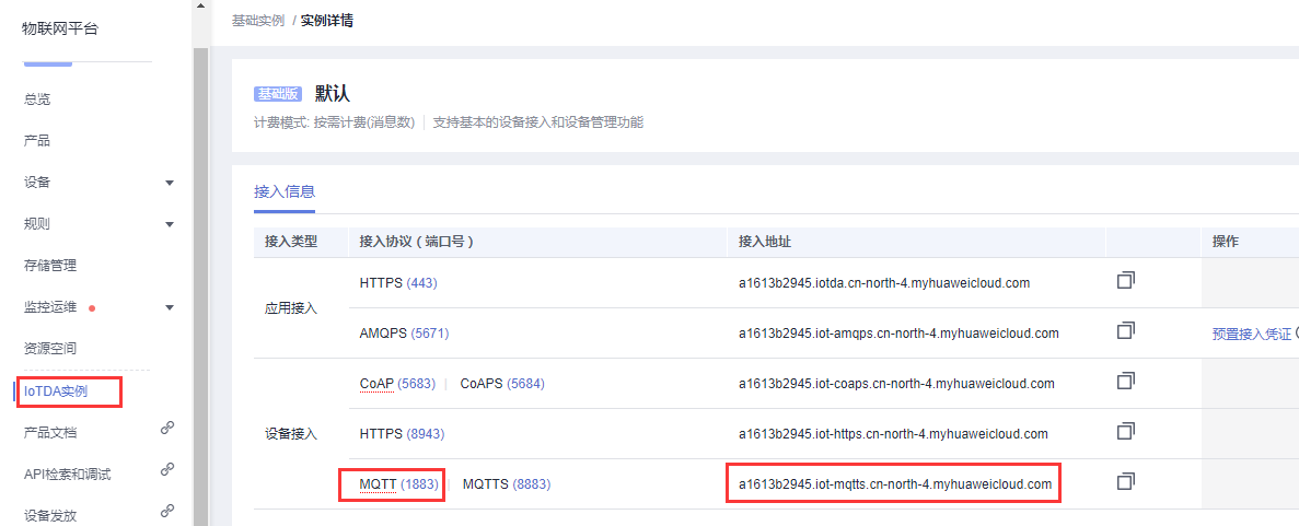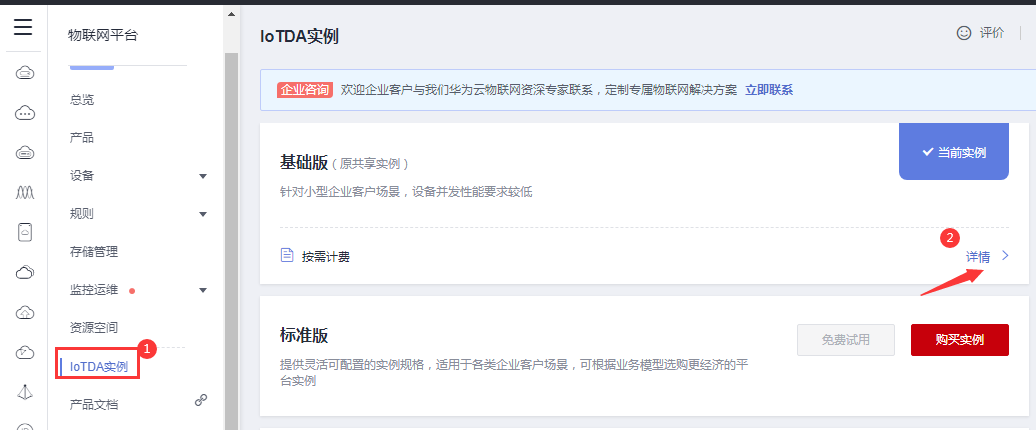 1、選華為云—設備接入IotDA服務。