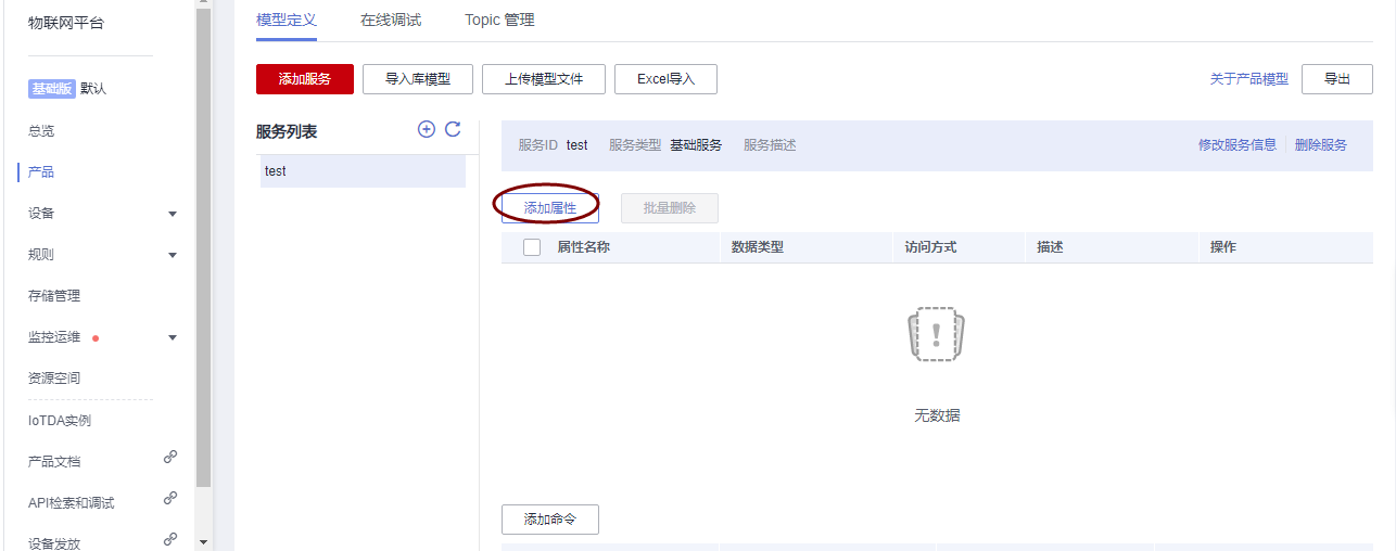 3、新增產(chǎn)品屬性:創(chuàng)建產(chǎn)品后,在對應產(chǎn)品下新增屬性。