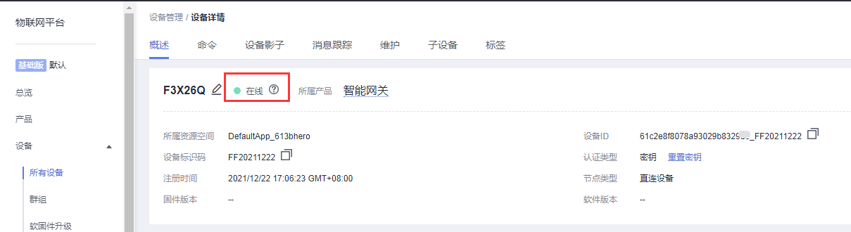 1、平臺上網(wǎng)關在線顯示: